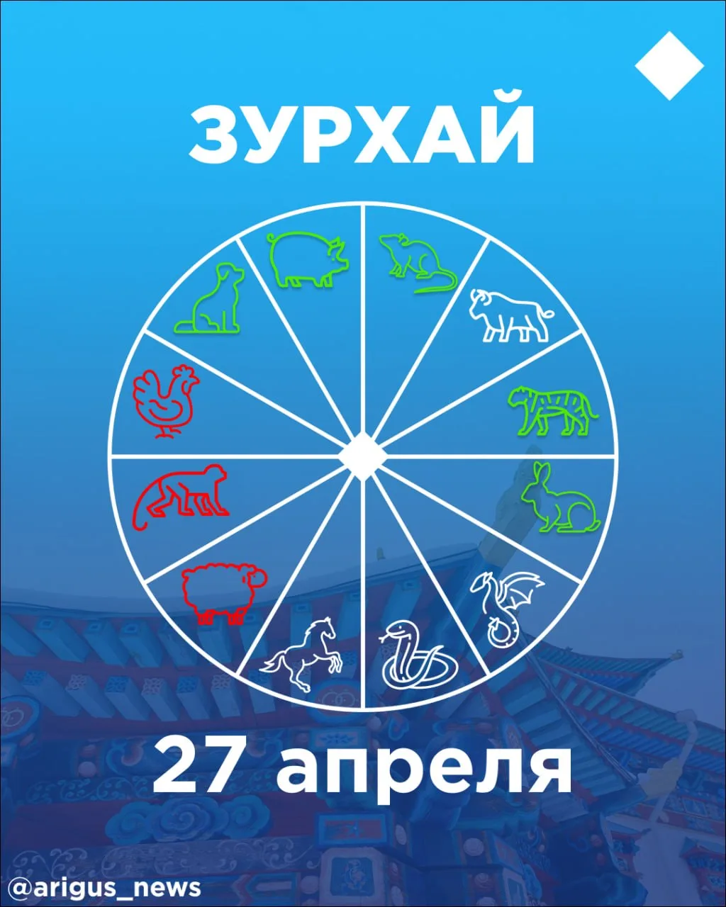 Луна, 11 лунное число, день беловатой Овцы, мэнгэ – 9 красных отметин, местоположение (hуудал) – Ветер. День демона НищетыБлагоприятный день для животноводства, растениеводства, культуры, торговли, науки, судебных и военных дел. После проведения...
