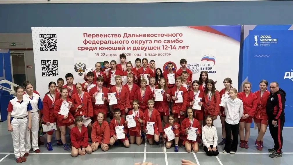 Во Владивостоке завершилось первенство Дальневосточного федерального округа по самбо среди спортсменов до 14 лет. Сборная Бурятии показала стабильный результат – в активе команды золотые и бронзовые награды.